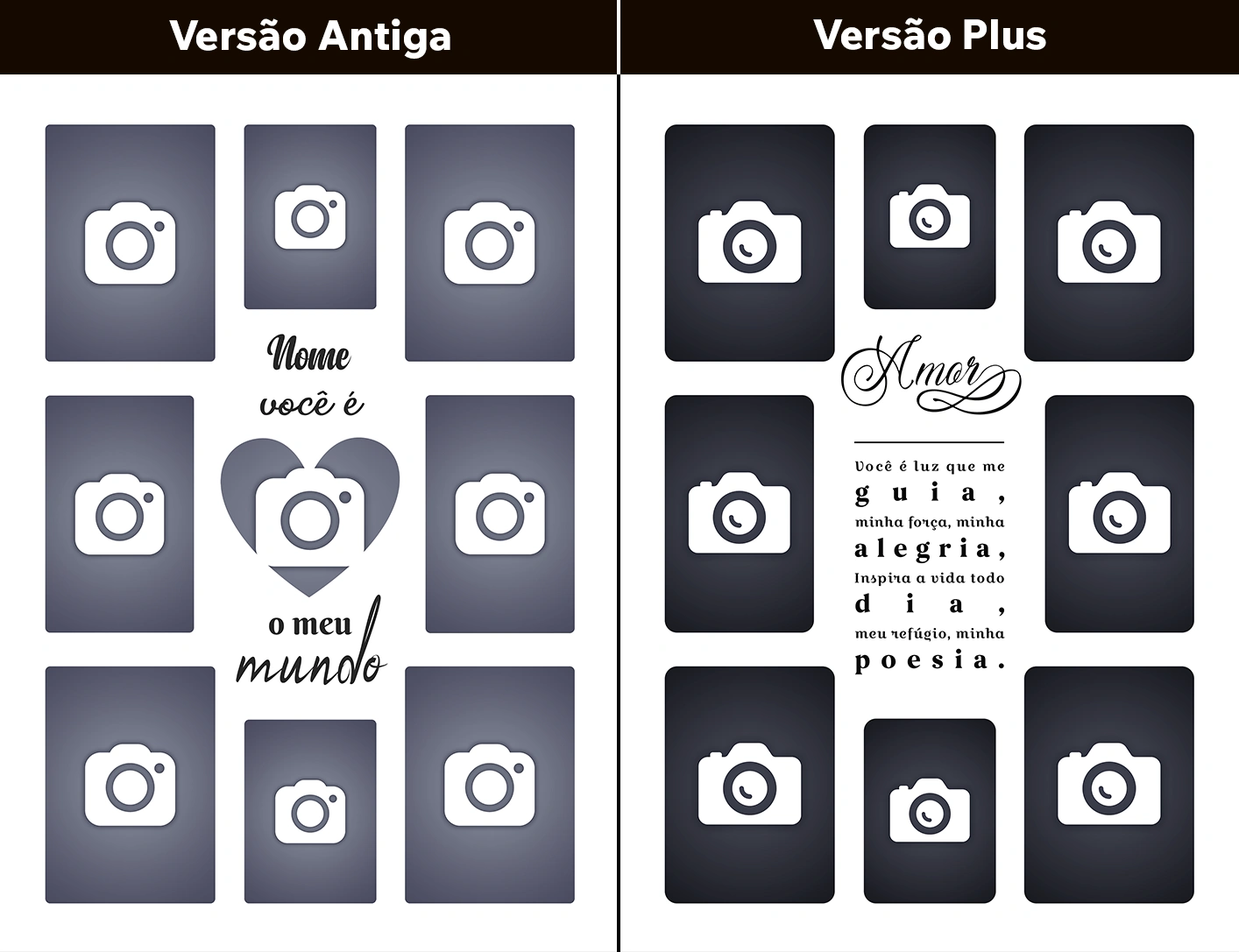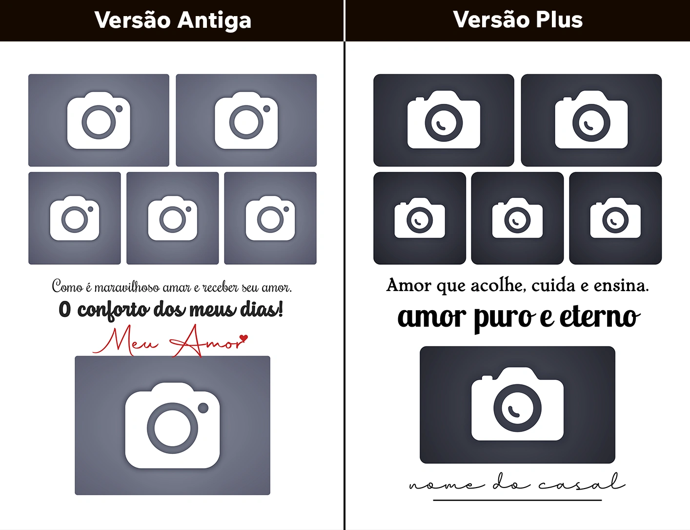 📸 As prévias acima são apenas alguns exemplos de artes que receberam novas composições de fotos, cuidadosamente selecionadas para transmitir mais emoção. Você terá acesso tanto às fotos individuais, quanto às artes prontas com essas mesmas composições.